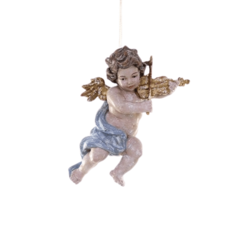 Graceful and sweet, the Cherub Ornament brings a touch of heavenly charm to your holiday tree. This beautifully detailed cherub features golden wings, a flowing blue sash, and a delicate violin, capturing the timeless joy of music and angelic serenity. Perfect for adding a sense of peace and wonder to your seasonal décor, it’s a classic ornament that will be treasured year after year.