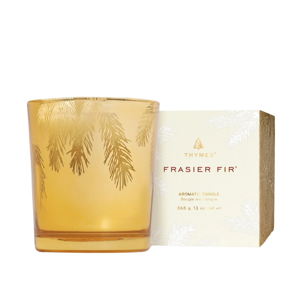 Elevate your holiday ambiance with the Large Frasier Fir Gilded Candle—a timeless statement of warmth and elegance. Etched with Thymes’ signature pine needle design and finished in radiant gold, this 13 oz poured candle captures the crisp, woodsy scent of Siberian fir, cedarwood, and sandalwood. Whether glowing on a mantle or gifted to someone special, it fills any space with the fresh, nostalgic fragrance of the season.