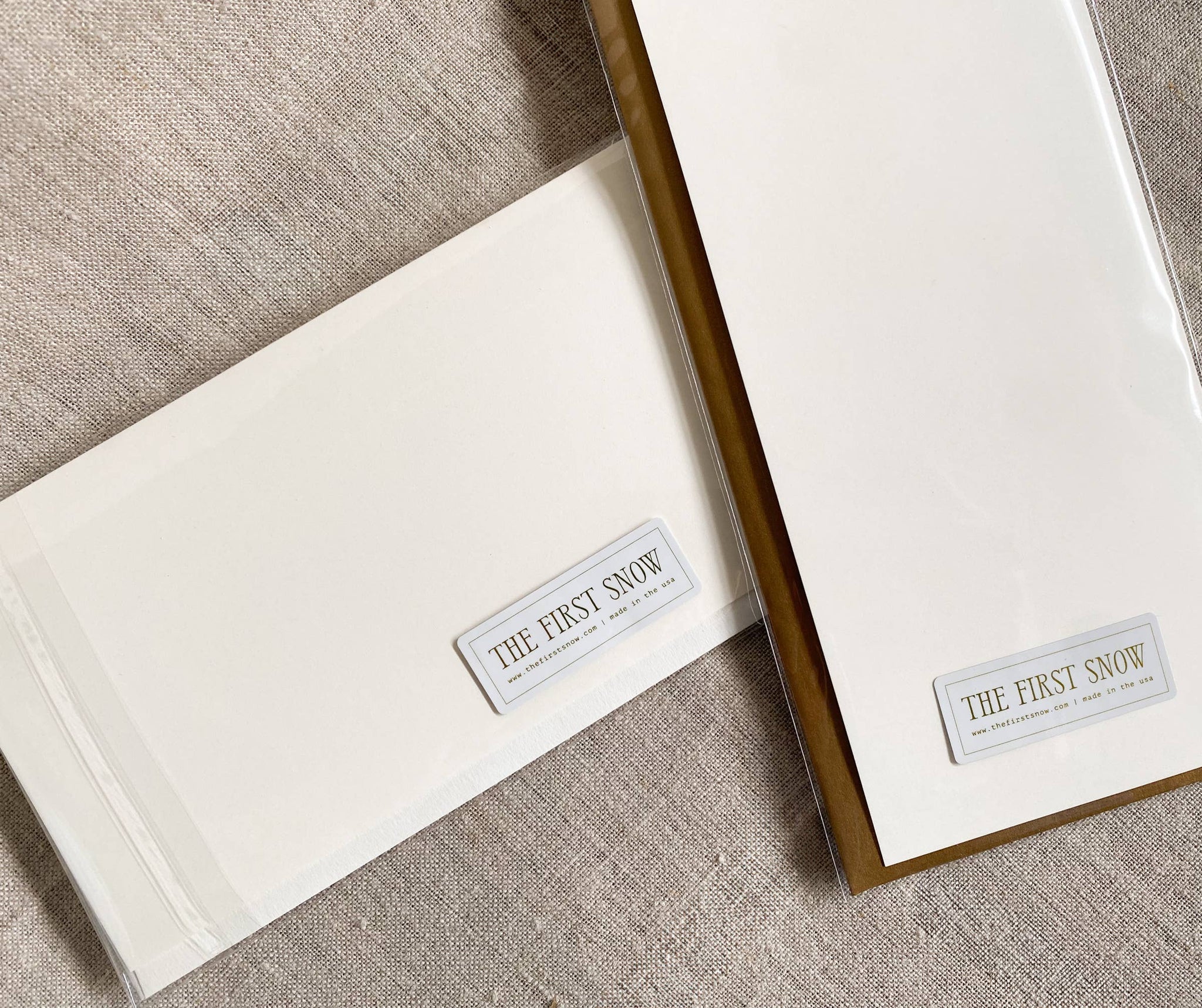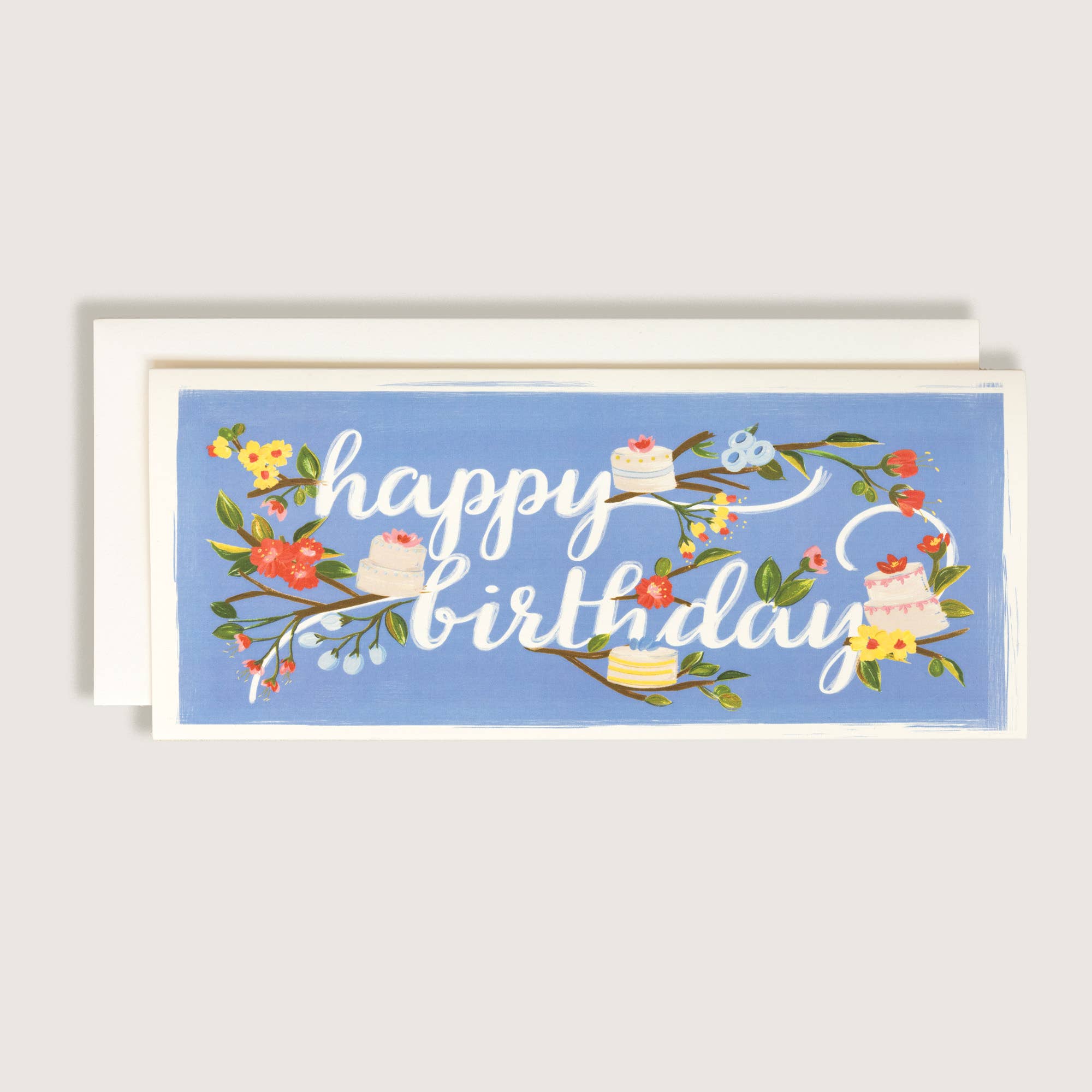 Bright and Cheery colors of sunshine yellow, red, and pretty blues. #10 Size Card. approx. 4 x 9.25. Cream Envelope. Cream Paper. Cello Sleeve.